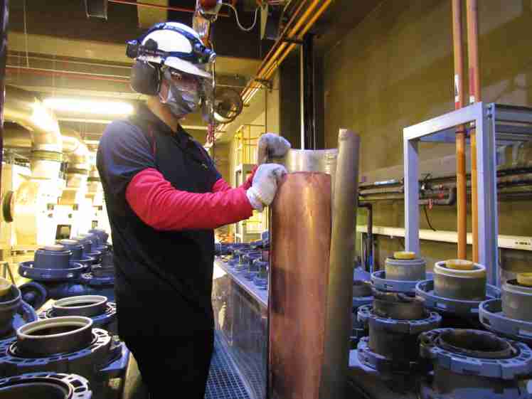 菠菜论坛将废弃物转化成有效的工业或民生原物料,,,图为废铜液淬炼后再制成纯度极高的铜管